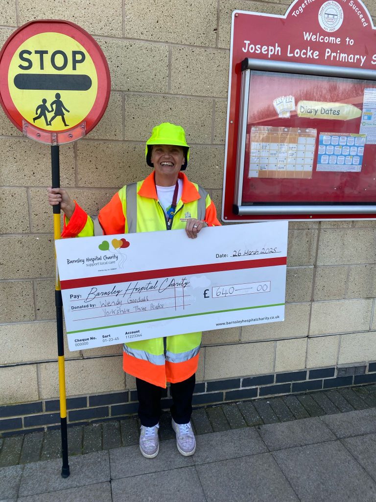 There’s no stopping Wendy Goodall, aged 59 years a School Crossing Patrol Warden at Joseph Locke Primary School in her mission to raise funds for Barnsley Hospital Charity.